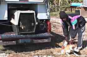 | pulled from between the slats of a pallet under a shed. The puppies are headed for homes in the US, thanks to the on going efforts of Kathy Hargreaves and Harry Meline, founders of SNIP, the Spay and Neuter Incentive Program that they founded and have registered as a not for profit.