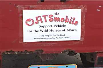 | The Abaco Wild Horse Fund recently bought a 1982 Datsun King Cab pick up truck, complete with an aluminum topper with lock boxes and a plastic bed liner. The truck has just over 100,000 miles on it and cost $1600. The engine has a number of new parts, and we're about to install a new clutch slave cylinder. However it runs well and has already proven its usefulness with transporting farm dogs for our long awaited farm dog spay/neuter program. |