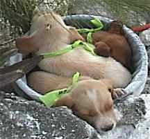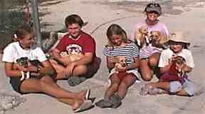Brynne, second from right, took "Louie" home to go sailing with her and her parents aboard "Fair N' Sea". Karen, far right, took Emily home to go sailing with her. Buccaneer, far left is temporarily residing with Mimi Rehor, founder of Arkwild and the Abaco Wild Horse Fund. All the rest of the puppies have been adopted in the United States.