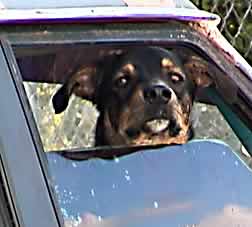 | The dog on top enjoyed his fresh air ride. Inside the truck we were able to carry up to six dogs, if they were friends! |