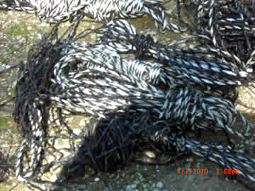 We had hoped that there would be enough growth in the forest area to support the mares, but drought has set in and there is only sparse new growth. Acamar is starting to look a bit thin. We found an area relatively free of sage (which can be ingested by accident as it grows up through regular pasture - the horses know better than to deliberately eat it) and would have carefully removed all the sage plants before letting the mares in. Now the men have to start all over again. Theyve been asked to take some time out from preparing yet another pasture to simply cut bundles of tall grass to bring to the mares so they will have some supplement until their pasture is ready. Below, a small portion of ruined fence.