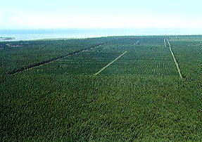 | Aerial tracking would not work. The horses often shelter in patches of palmetto trees within the forest. This double roof of palmetto and pine makes them invisible from the air. |
