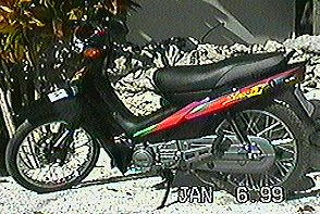 Abaco Outboard Engines, Ltd. of Marsh Harbour, Abaco donated a brand new Yamaha Sigma E motorcycle to the Abaco Wild Horse Fund in January. Simon Bethell, President of AOE, had been watching Milanne (Mimi) Rehor, (President of the Abaco Wild Horse Fund) struggle in and out of his shop with a series of fairly hopeless two wheeled vehicles and decided to put the AWHF on some sure footing.